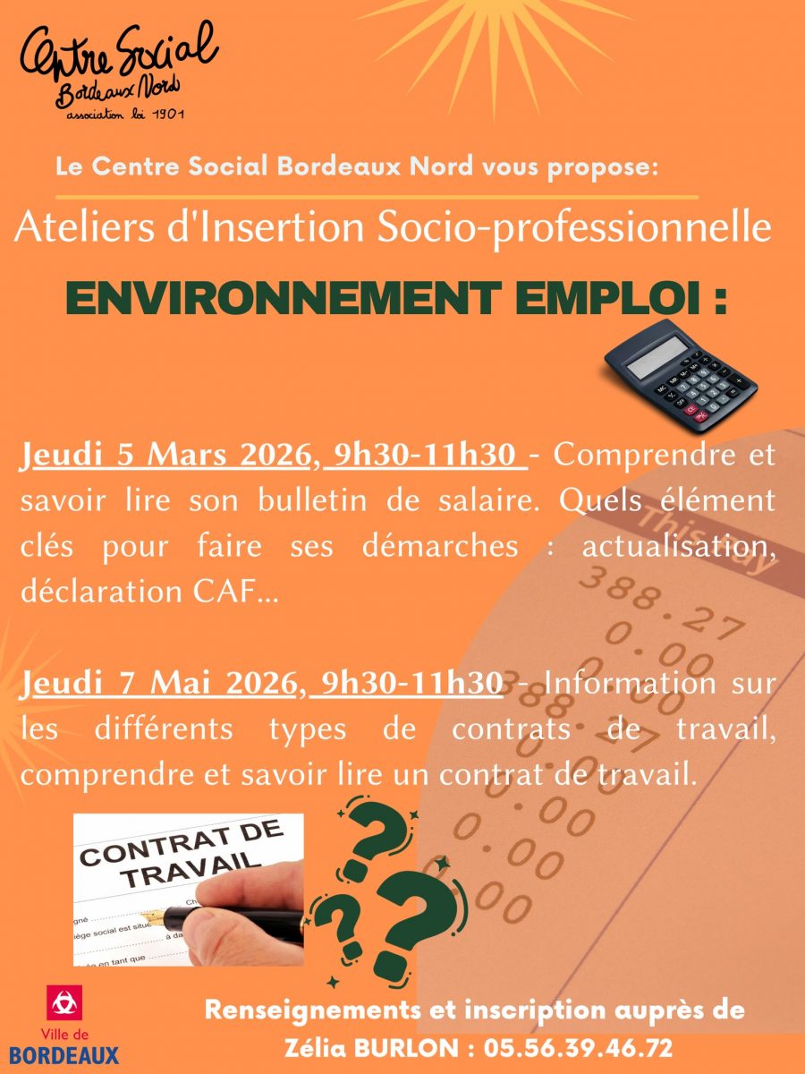 Le Centre Social Bordeaux Nord vous propose deux ateliers pour mieux comprendre le monde du travail et gagner en autonomie dans vos démarches administratives. Jeudi 5 […]